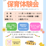 朝、元気に「おはよう!」と登園した子どもたちは、友だちや保育者と遊び、学びながら成長します。お絵描きやごっこ遊び、戸外遊びを楽しみ、給食で食べる力も育みます。季節の行事や地域交流を通じて豊かな経験を重ね、家庭と協力しながら安心できる温かい環境を大切にしています。