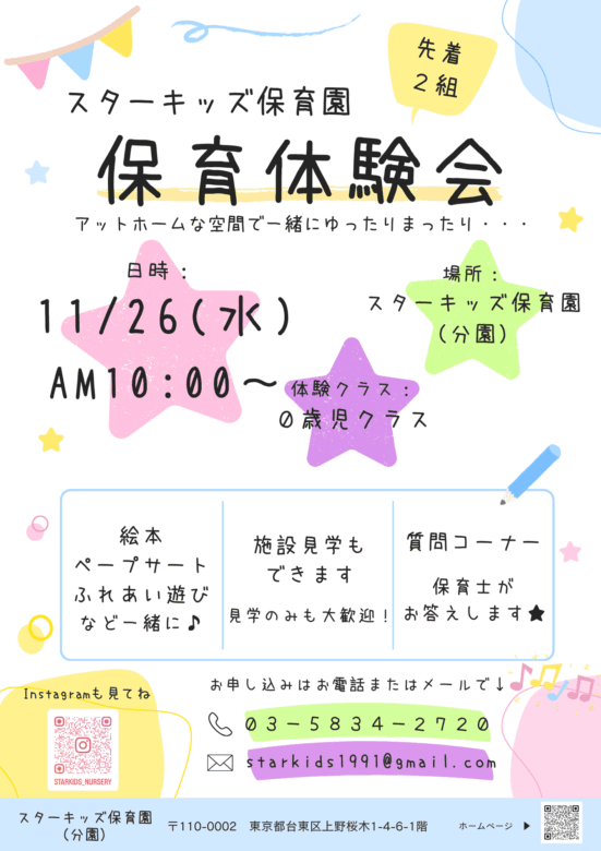 分園2歳児体験会☆絵本・手遊び・お絵描き☆先着2名